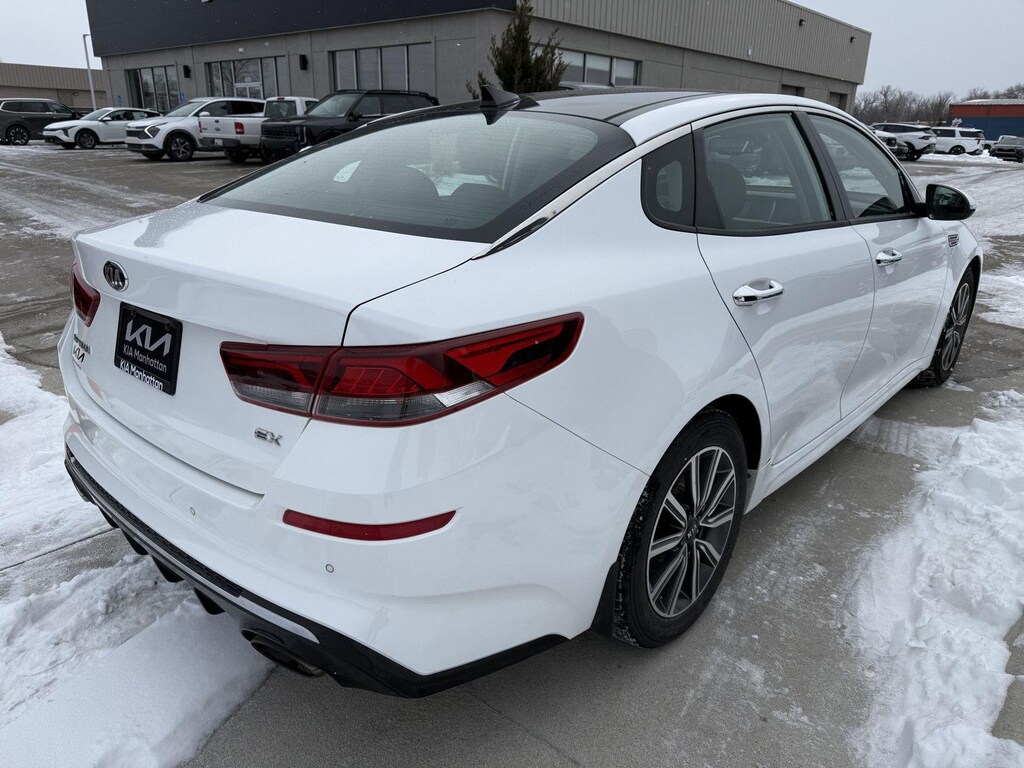2019 Kia Optima EX, has a Snow White Pearl exterior and Black interior color with only 102,809 miles. Stock Number KG313720. You can connect with us by calling (785) 236-7002.